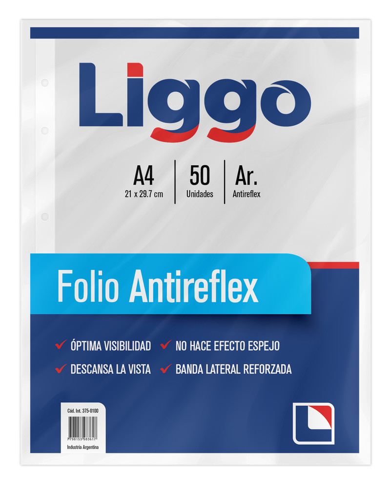 FOLIOS LIGGO ANTIR. PP 40 MIC.T/A4 X 50U.-375-1100-*D*