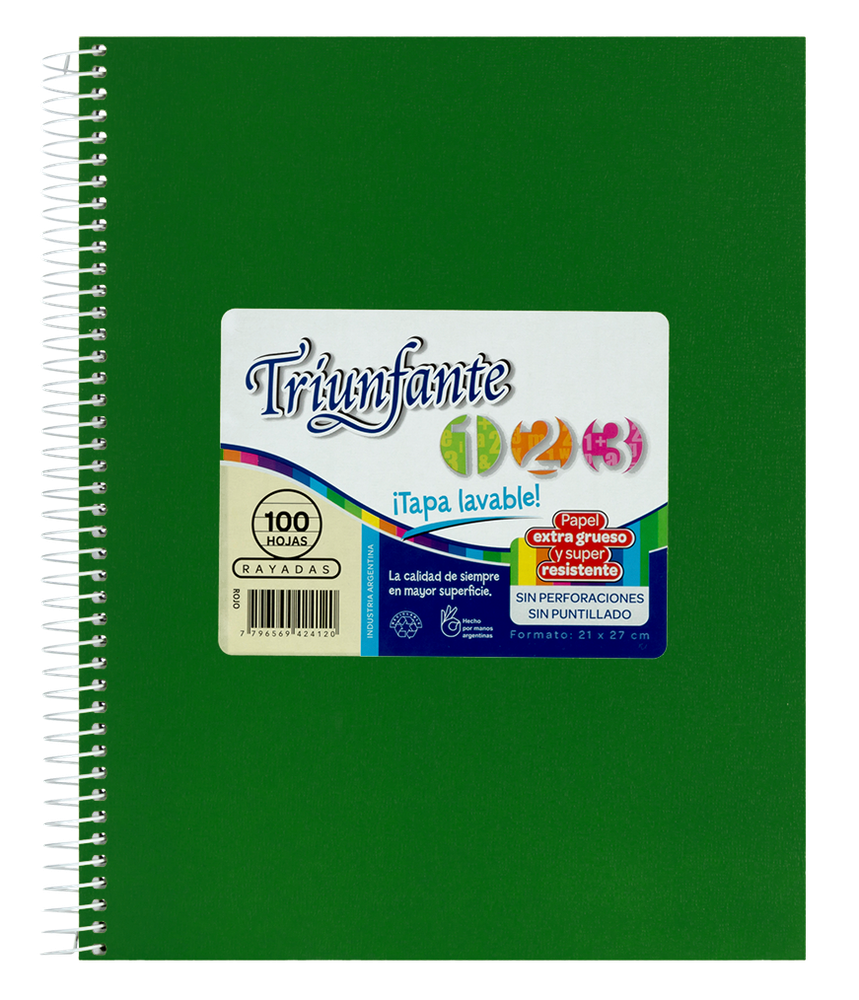 CUADERNO TRIUNFANTE 21X27 VINIL.60HC VERDE-473227-