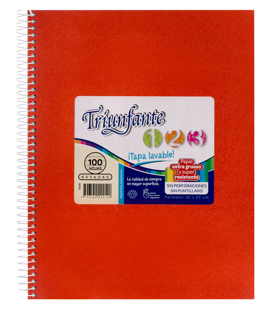 CUADERNO TRIUNFANTE 21X27 VINIL.60HC ROJO-422225-